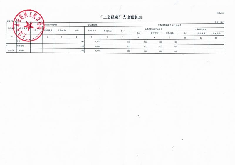 市城市防洪工程管理处支出预算表